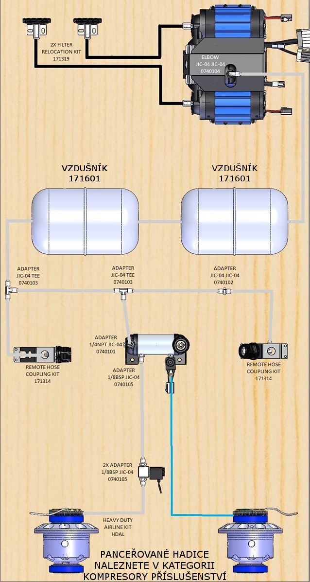 Panceřovanou hadicí propojite části ARB AIR SYSTEMS.